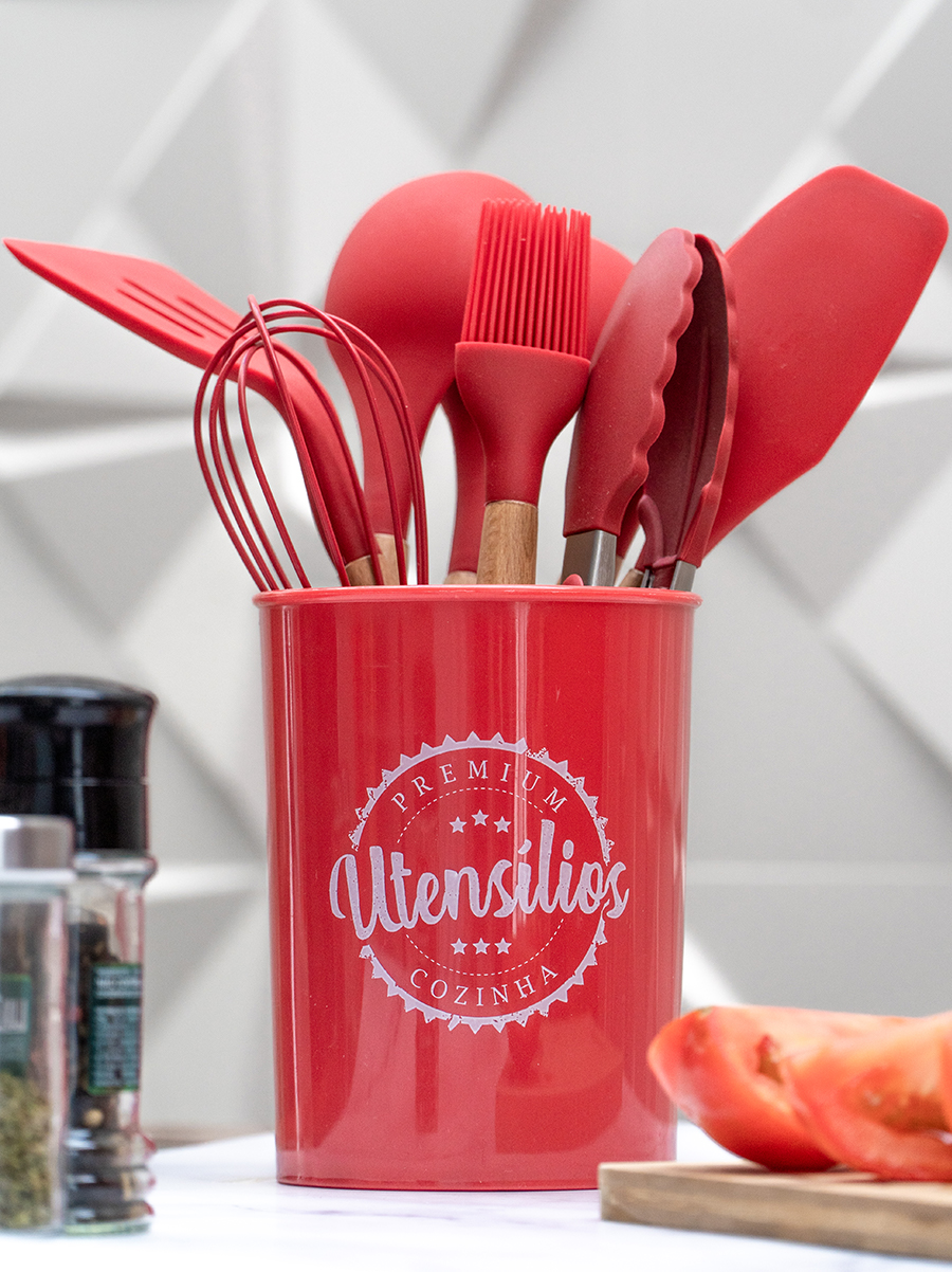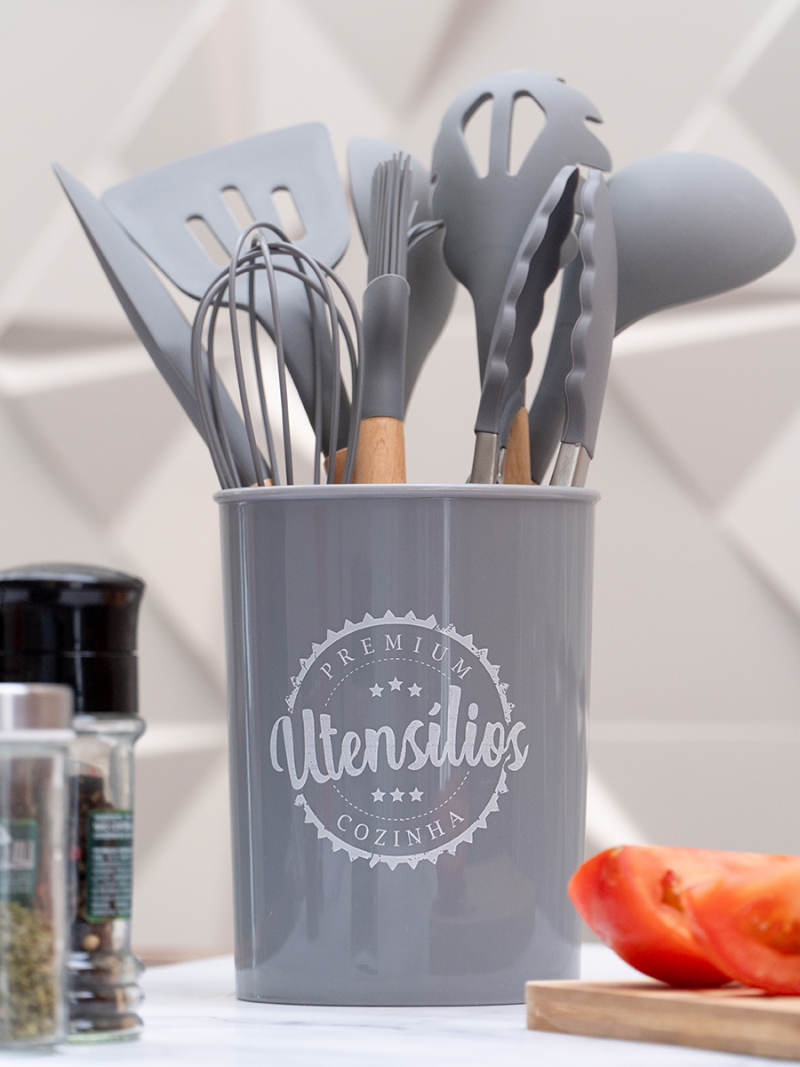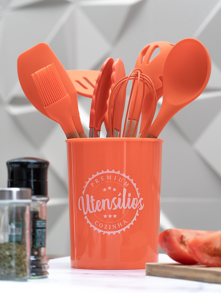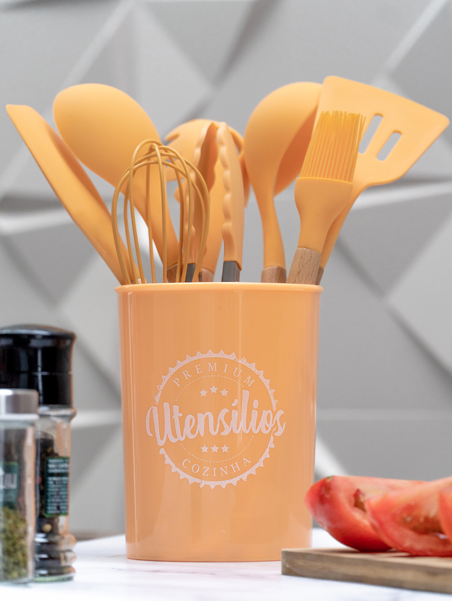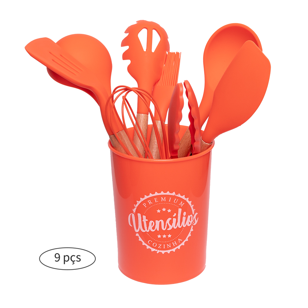 CONJUNTO DE 8 UTENSÍLIOS DE COZINHA EM SILICONE E 1 SUPORTE