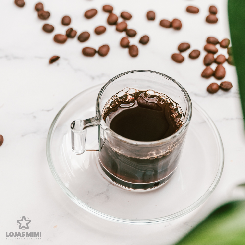 – Moderno conjunto de xícaras com pires 90mL. Ótimo para servir cafés expressos ou coados.