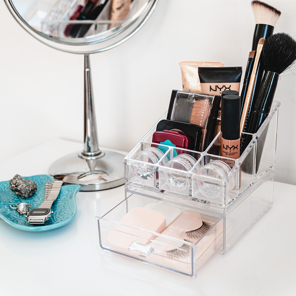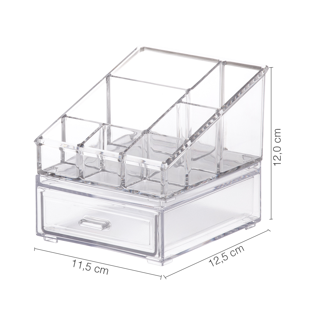 Ótimo para organizar as maquiagens e deixar tudo de fácil acesso e visão. Material acrílico resistente, moderno e prático.