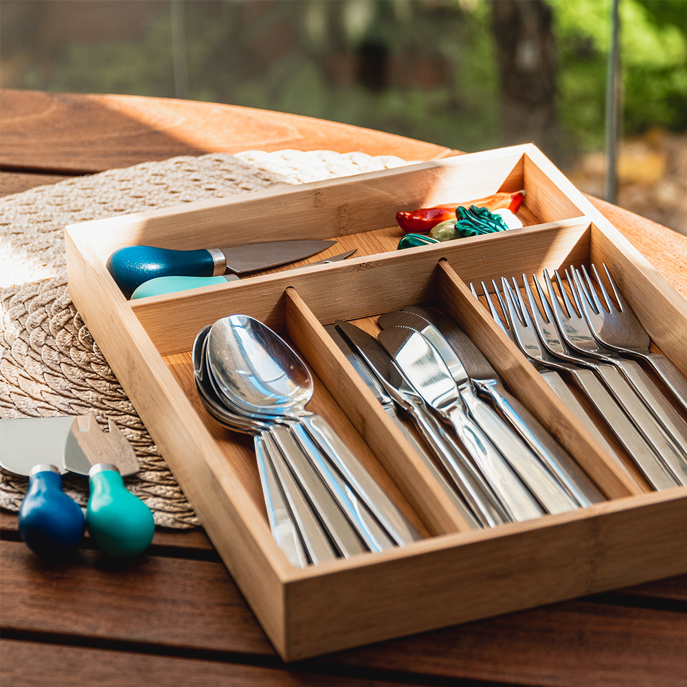 Ótimo para organizar os talheres dentro da gaveta ou até mesmo expor os talheres de forma decorativa em eventos.