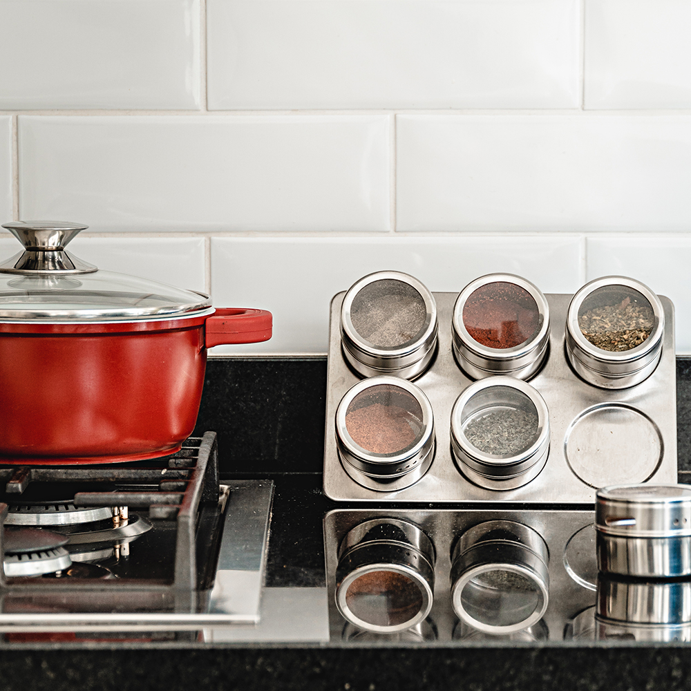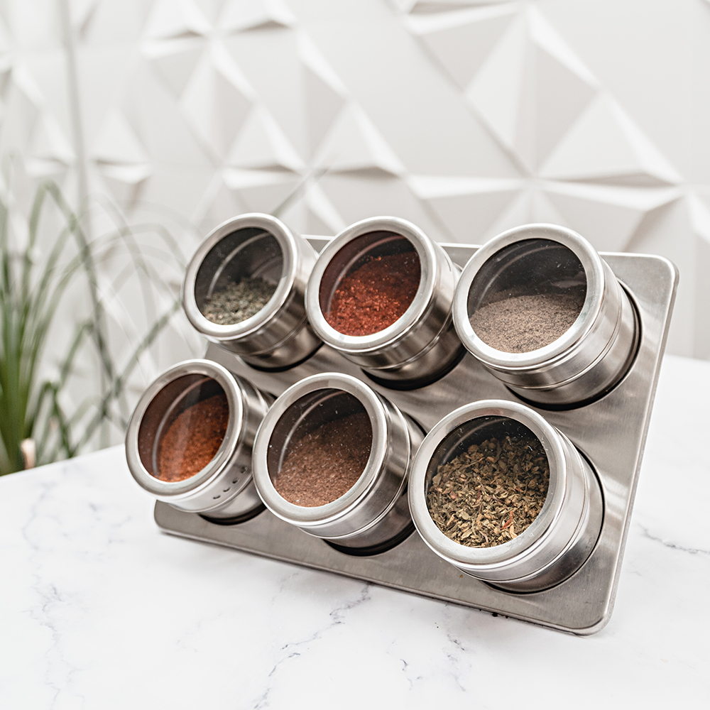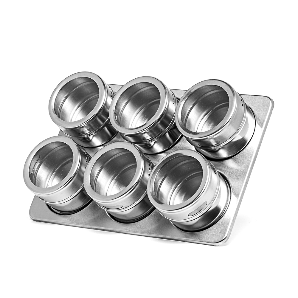 Porta Tempero Condimento Com 6 Potes em Inox e Base Magnética